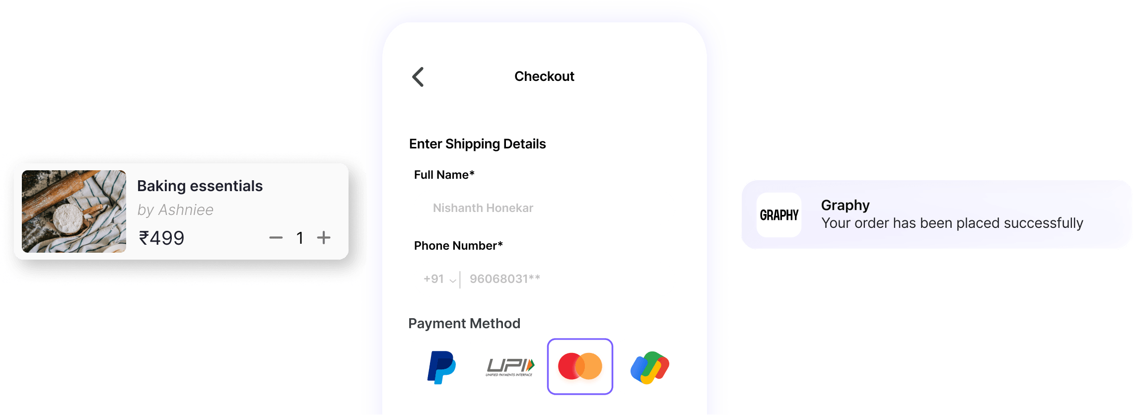 Activate payments in one click and collect revenue from your sales in minutes — with support for UPI, cards, net banking, wallets, Stripe, PayPal, and country-specific pricing.