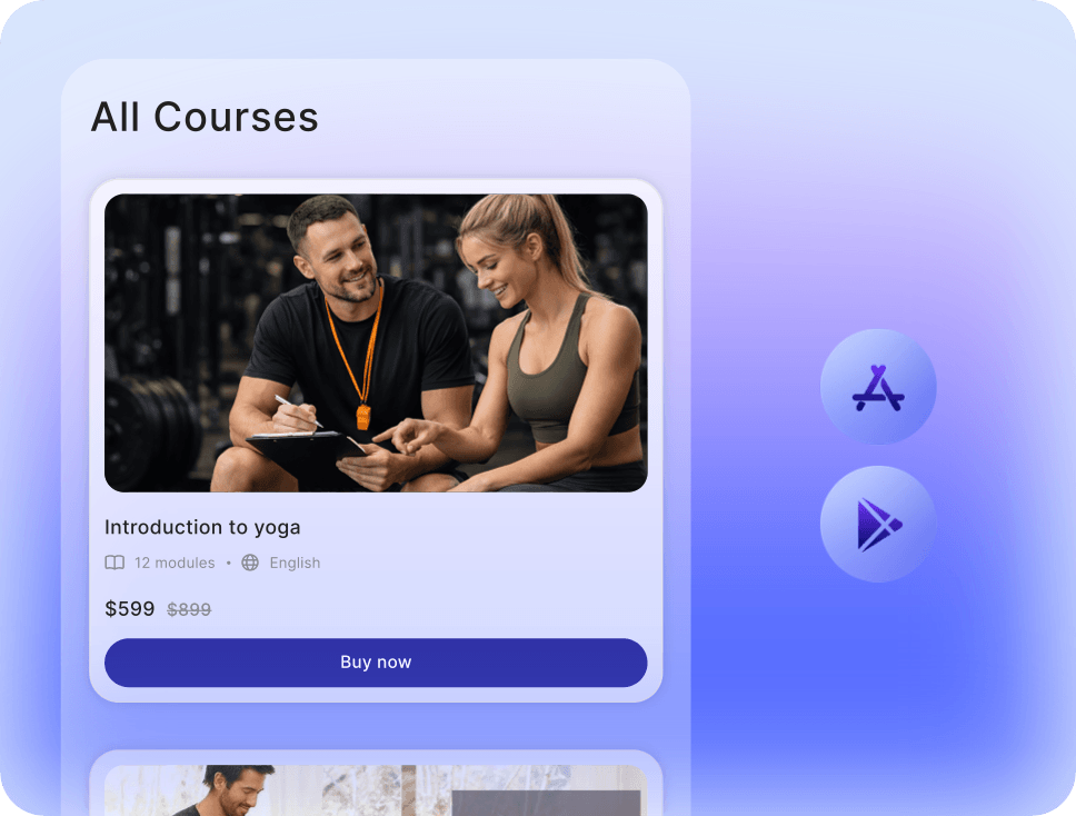 Turn your courses, memberships, and community into a native iOS + Android app your audience will love. Fully branded, completely white-label, launched on the App Store and Google Play — without writing a line of code.